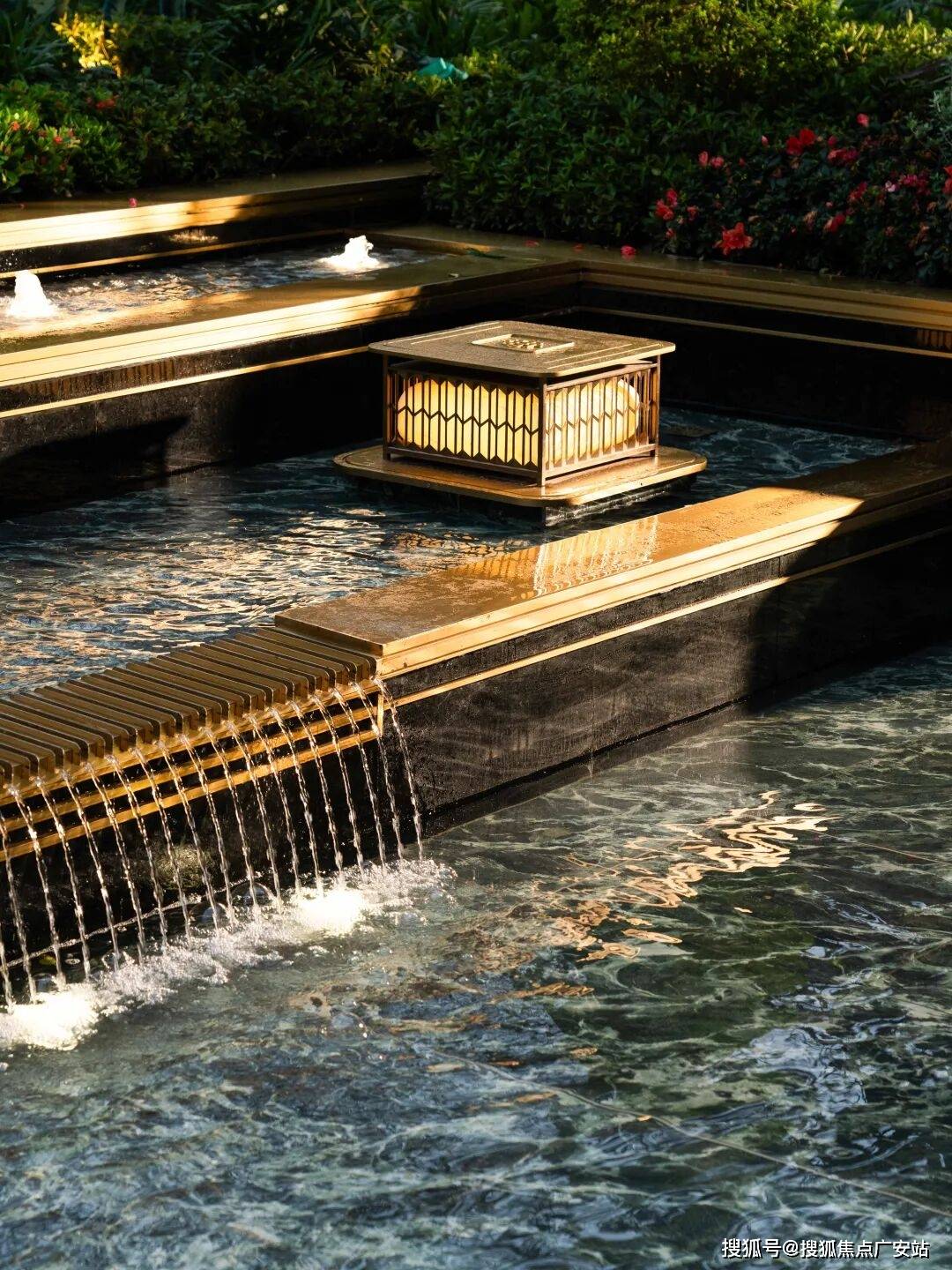 拼花工艺与香格里拉黑大理石大堂地面也采用金世纪水刀,园奢石布景墙辅以莫奈花,凡的心胸营造了非。