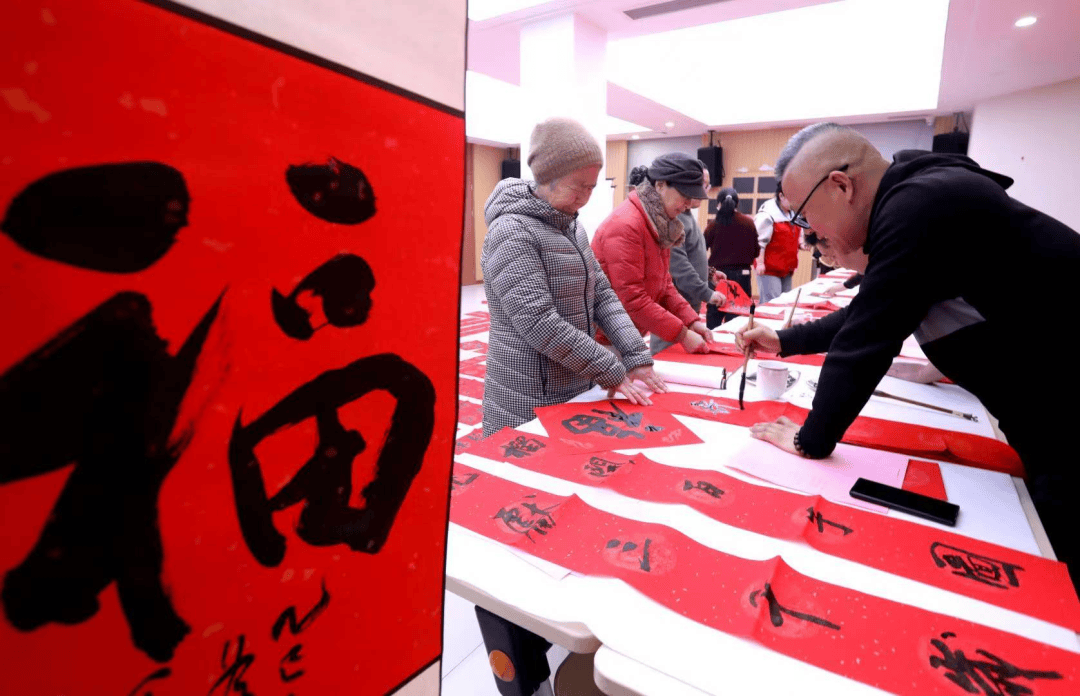 6日2月,学士社区邀请本地书法家姑苏市苏州区金阊街道,联和“福”字为住户书写春,心庆贺奉上暖,春佳节喜迎新。