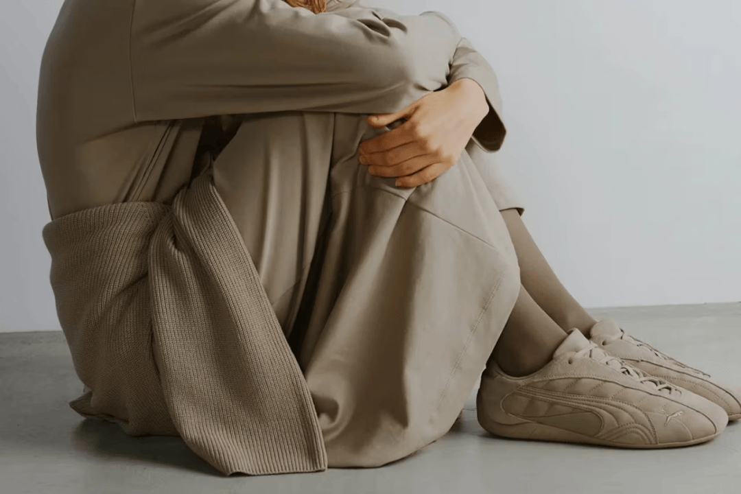 主义规模而正在极简, Plus 的联名则闪现出对薄底鞋穿搭系统的修建思绪Graphpaper 与 PUMA SPEEDCAT从单一款式到联名竞赛。复古赛车鞋改造的单品这款基于 PUMA ,线型轮廓保存流,面尽显极简质感沙色三重皮革鞋。