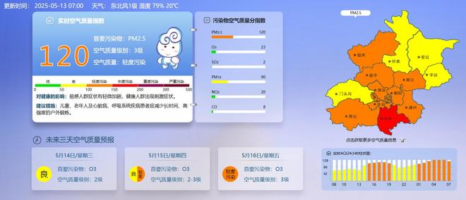 测核心今早7时数据据北京市生态境况监,质料指数120目前及时氛围,PM2.5首要污染物,级别3级氛围质料,轻度污染氛围质料亚星代理