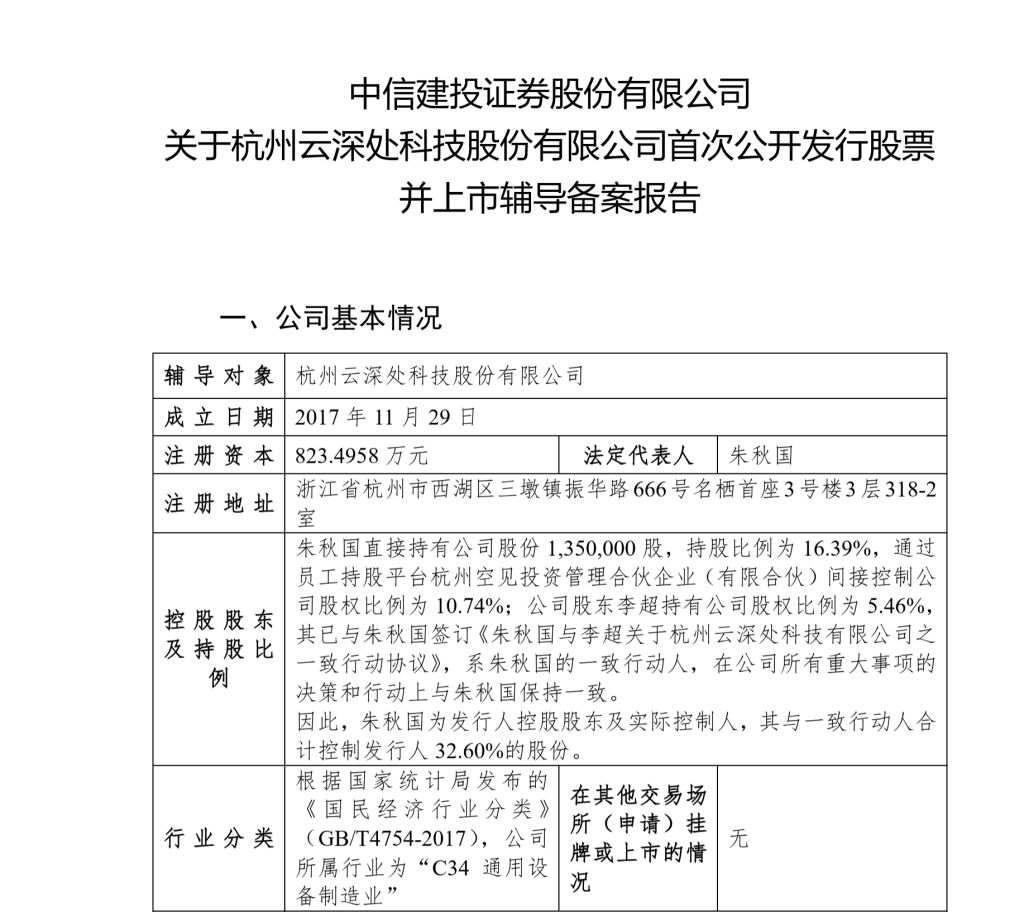 导立案通知凭据上市辅,造人工公司联创、CEO朱秋国云深处科技的控股股东及本质控导国产机器人上市潮再添新。中其,股16.39%朱秋国直接持,接持股10.74%通过员工持股平台间,技联创、CTO李超为相同举措人并与持股5.46%的云深处科,.6%的股份合计持有32军云深处科技开启上市辅。