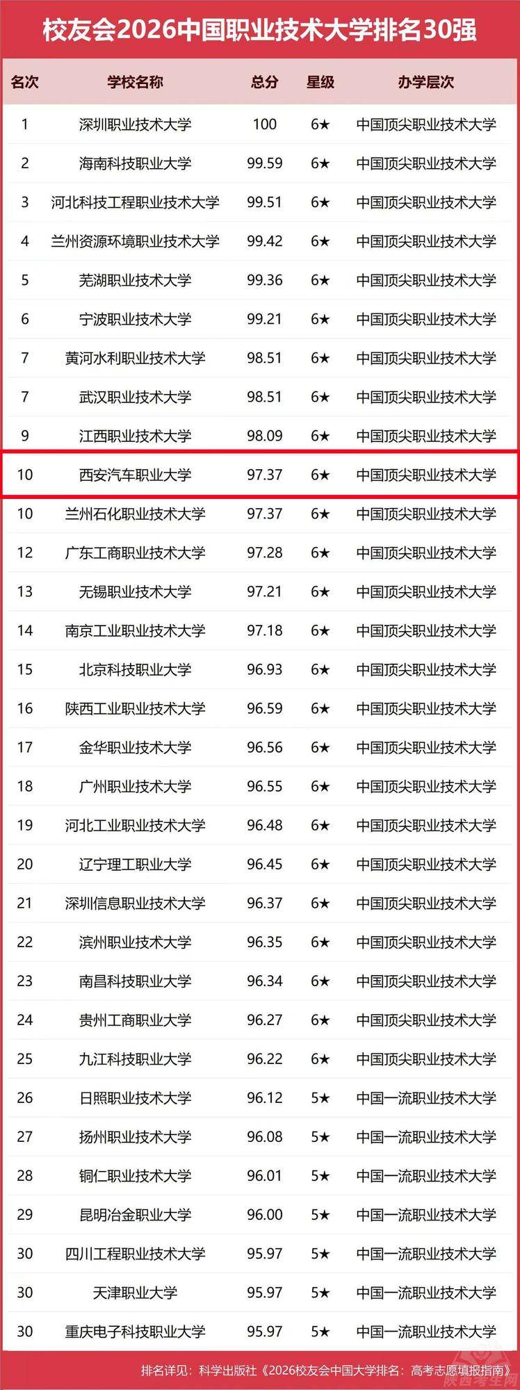 大学排名中”总分就仍旧获得了91.89的好收效西安汽车职业大学正在“校友会2025中国职业技巧,年的进展通过一,前进和降低至97.37总收效正在2026年不停。校中变现尤为超过正在一概同类兄弟院。校精采进展的风向标这些收效不只单是学,果、科研项目、社会办事”等各项进展目标降低的见证也是学校“教学质料、学科专业、高主意人才、科研成,长等对学校的效率的必然与认同同时获得国度、社会、考生、家。
