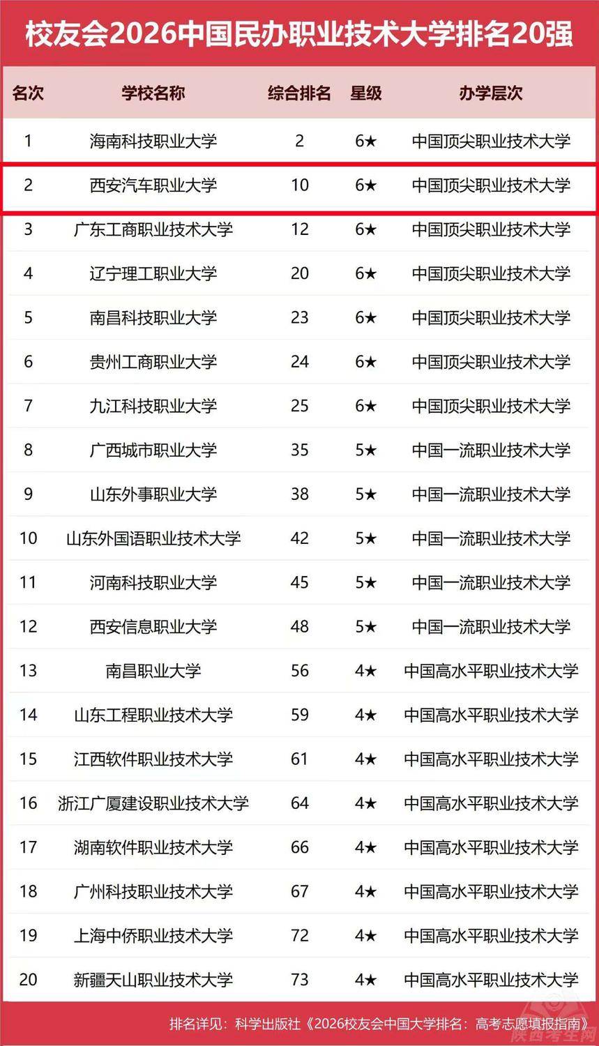 国民办职业技巧大学排名20强中此中咱们创造校友会2026中,大学位居第一海南科技职业,大学位居第二西安汽车职业,术大学位居第三名广东工商职业技。