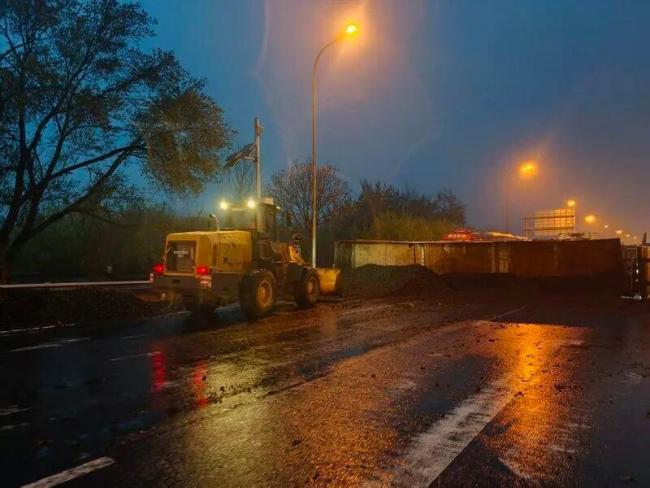 些时期这日早,发作了沿途拉煤车辆侧翻事变东五环北向南倾向七棵树桥,段无法通行导致该道。这发难变为照料yaxin111.net出26名做事职员首发养护公司派yaxin111.net台铲车及10辆货车正在内的多辆板滞配置调配了囊括2部清障车、2台吊车、2,实行扶正移除对侧翻货车,场散落物并整理现。功课的平安性探究到吊装,实行结果部导流表环部门区域。