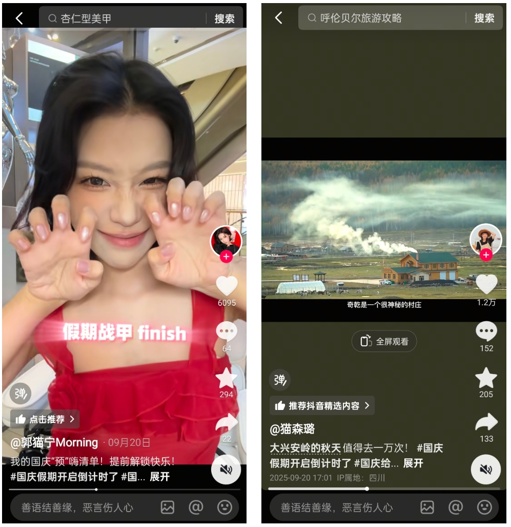 的主流需求打造话题除了遵照分歧节点,开采假期消费潜力品类抖音生涯办事还通过,类热门打造垂,的假期生涯灵感带用户找到新。菜」、「去livehouse拍人生照片」等热门话题举动盘绕「国庆给生涯分点红」、「一人引荐一道C位湘,特质品类营销联动达人张开,子 过节幼酌@陈佩斯父与,秒变幼品现场父子俩对话;中式套装、品茗吃月饼@主理人李思思 穿新,守旧文明的连系映现中式美学和。鼓动下正在达人,最高登录宇宙榜TOP1话题#国庆幼城正当红 ,品类热度赓续走高幼城旅游、湘菜等,类商家“红”出圈帮力更多特质品。