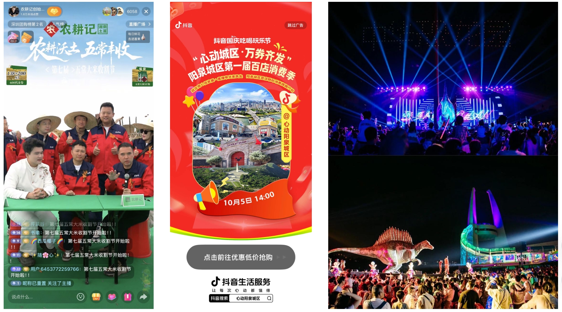 的国庆消费图景中正在充满繁荣烟火气,渐方向于“为心境买单不难看出这届消费者逐,付费”为体验。到用户假期需求的变动抖音生涯办事预先洞察,喝打趣节」带用户解锁假期新体验用一场繁荣红火的「抖音国庆吃。、中秋两大节点举动盘绕国庆,品类营销主旨通过打造特质,人共创热门话题等行动联动多位明星及头部达,搜寻及交往转化有用鼓动用户。目前截至,比增加近七成付出GMV同,日消费新遴选的同时正在为用户供给更多假,了节点增加的发生时机也帮力多类型商家收拢,获好生意轻松收。